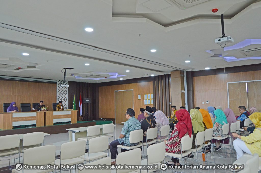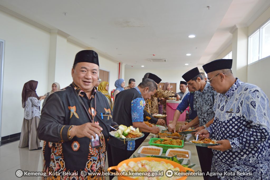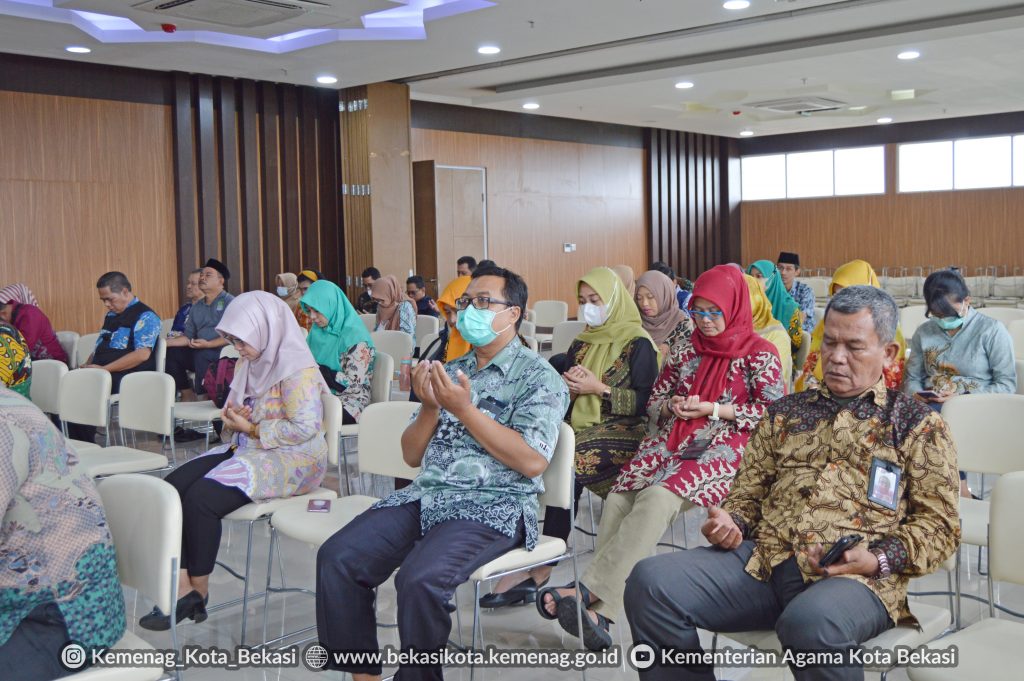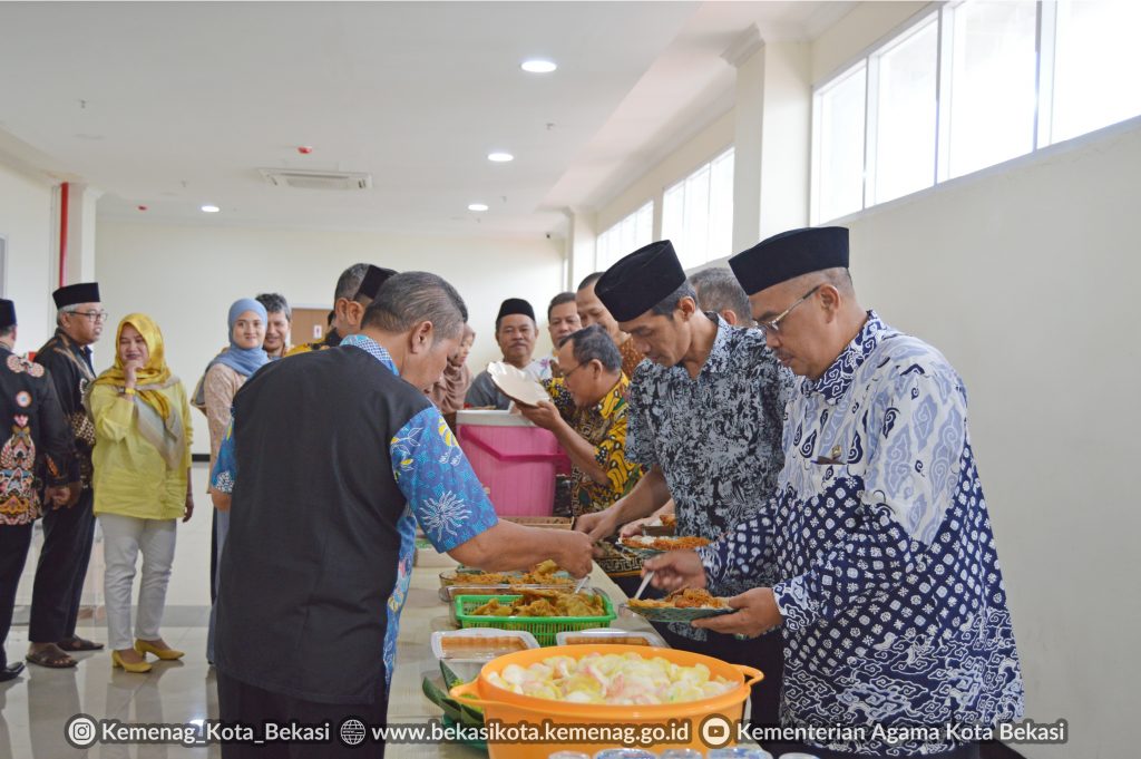 Segenap ASN di Kantor Kementerian Agama Kota Bekasi mengikuti kegiatan Pembukaan Pengajian dan Sarapan Bersama pada hari Rabu (01/02/2023). Kegiatan dimulai sejak pukul 7.30 pagi dan bertempat di aula lantai 5 Kantor Kementerian Agama Kota Bekasi. Diawali dengan pembacaan dizikir dan sholawat oleh ustadz Dr. H. Ahmad Hotib, kegiatan tersebut berlangsung khidmat. Para ASN yang hadir dengan khusyuk mengikuti kalimat-kalimat dzikir dan sholawat yang dilantunkan.