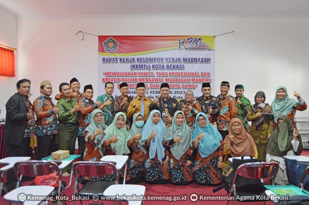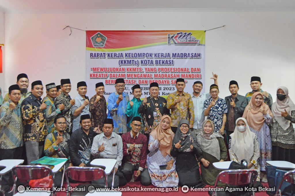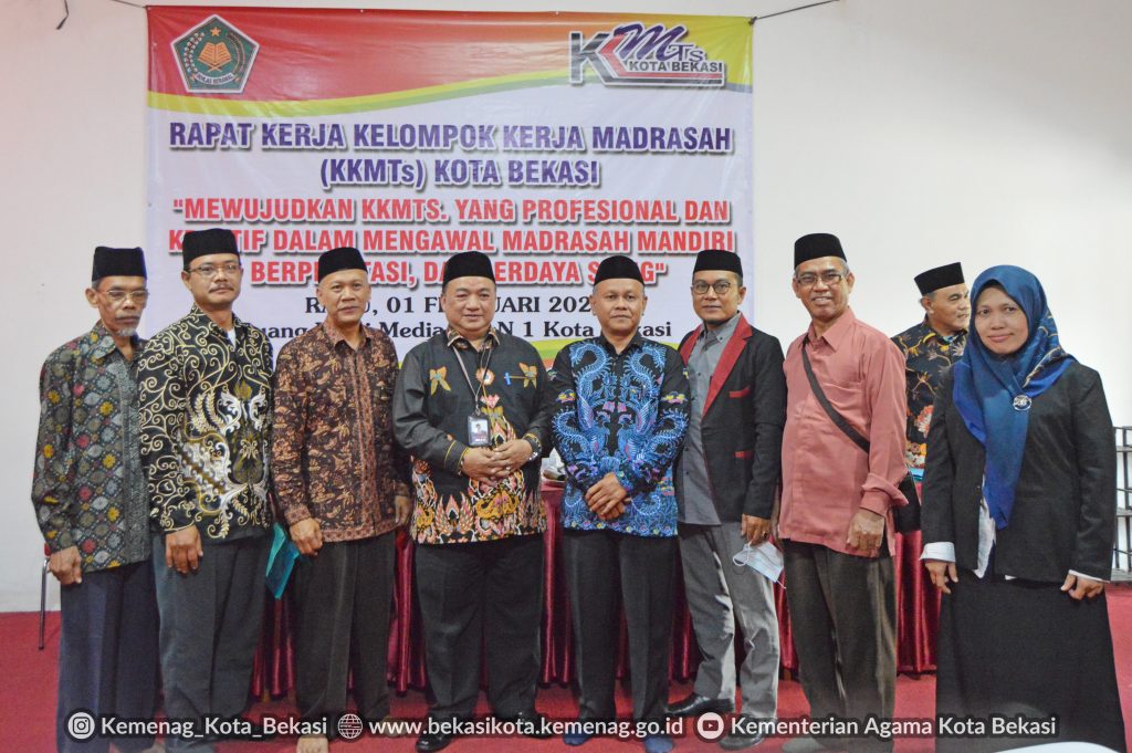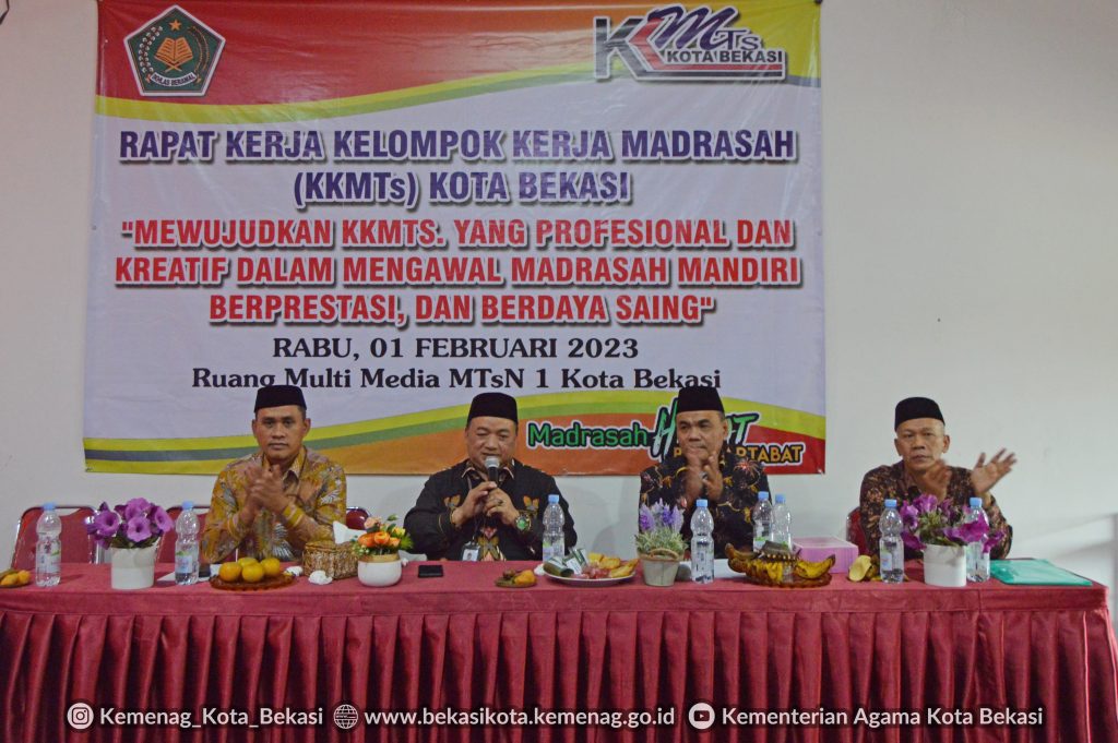 Kepala Kantor Kementerian Agama Kota Bekasi, H. Shobirin, hadir membuka kegiatan Rapat Kerja Kelompok Kerja Madrasah Tsanawiyah (KKMTs) Kota Bekasi pada hari Rabu (01/02/2023). Bertempat di Ruang Multi Media MTsN 1 Kota Bekasi, kegiatan tersebut diikuti oleh seluruh Kepala Madrasah Tsanawiyah se-Kota Bekasi, baik negeri maupun swasta. Turut hadir Kepala Subbag Tata Usaha (H. Abdul Syakur), Ketua KKMTs Kota Bekasi (H. Wahid Ali) yang juga merupakan Kepala MTsN 3, Bendahara KKMTs Kota Bekasi (H. Imroni) yang juga merupakan Kepala MTsN 2, dan Kepala MTsN 1 (H. Bukhori) selaku tuan rumah kegiatan ini.