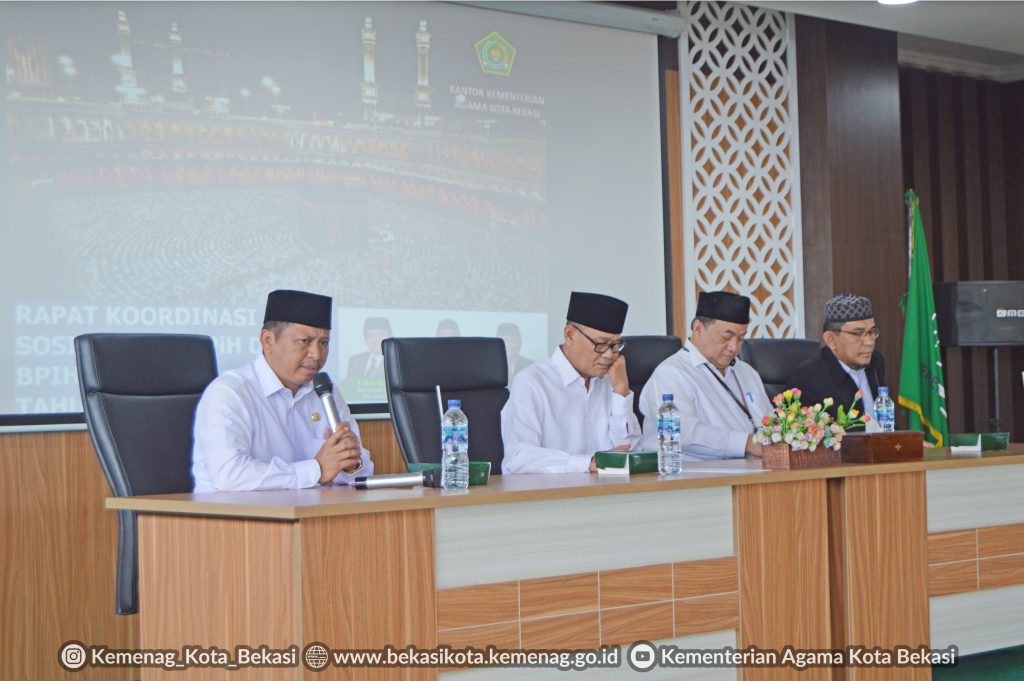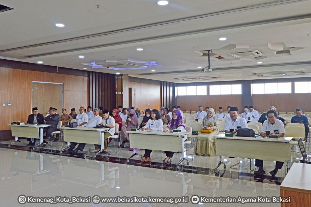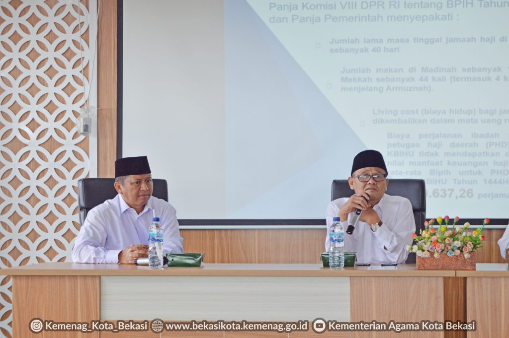 Kantor Kementerian Agama Kota Bekasi kembali mengadakan Rapat Koordinasi Sosialisasi Bipih dan BPIH pada hari Senin (20/02/2023). Hadir sebagai pembicara adalah Kepala Kantor, H, Shobirin, Kasubbag TU, H. Abdul Syakur, Kepala Seksi PHU, H. Hasbialloh serta Ketua FKBIHU Kota Bekasi yaitu H.M. Zaidun Djaelani. Kegiatan juga dihadiri oleh para Kepala Seksi dan Penyelenggara, Kepala Madrasah Negeri, Kepala KUA Kecamatan, Penyuluh Agama Islam Fungsional, Ketua POKJAWAS, serta para Ketua KBIHU.