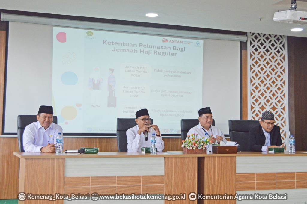Kepala Kantor mengapresiasi sikap masyarakat Kota Bekasi yang relatif santun dalam menanggapi putusan Bipih dan BPIH tahun ini. “Karena semua diputuskan secara logis dan bertanggungjawab, ditambah dengan Bapak dan Ibu yang bisa menjelaskan dengan teduh, sehingga calon jemaah haji di Kota Bekasi bisa memahami dan menanggapi situasi ini dengan santun,” ujarnya.