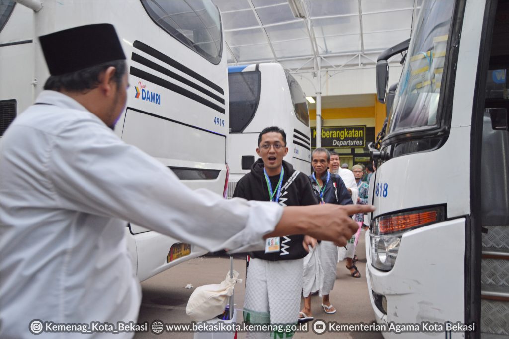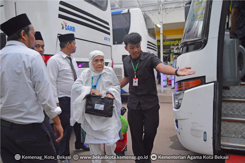 480 jemaah haji asal Kota Bekasi memasuki Asrama Haji pada hari Kamis (15/06/2023).